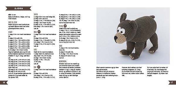 Figurerne hækles i bomuldsgarn og er 12-32 cm høje.