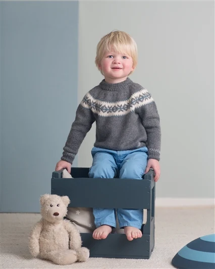 - Pinde: Lille rundpind og strømpepinde nr 3 og 3,5.