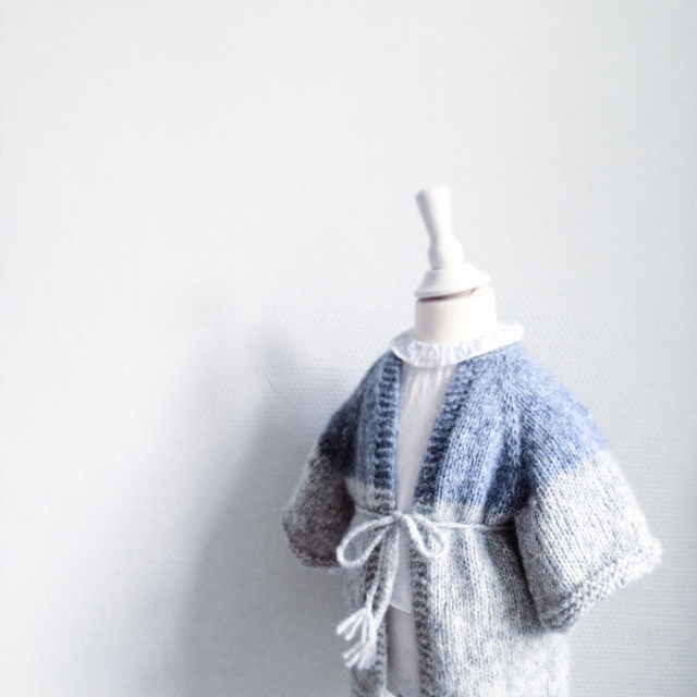 Strikkeopskrift på kimono der er lang bag på og med 3 / 4 ærmer.