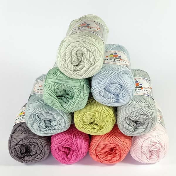 Mayflower Cotton Junior 8/4 er et lækkert bomuldsgarn i høj kvalitet og i mange flotte farver.