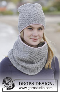 Sættet består af: Strikket DROPS hue og hals i ”Alaska” med dobbelt perlestrik