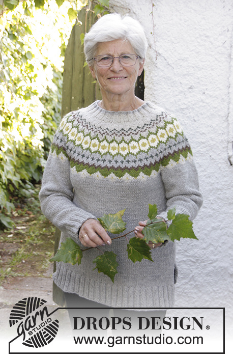 Strikket DROPS bluse i ”DROPS Nepal” med rundt bærestykke, nordisk mønster, strikket ovenfra og ned. Str S - XXXL.
