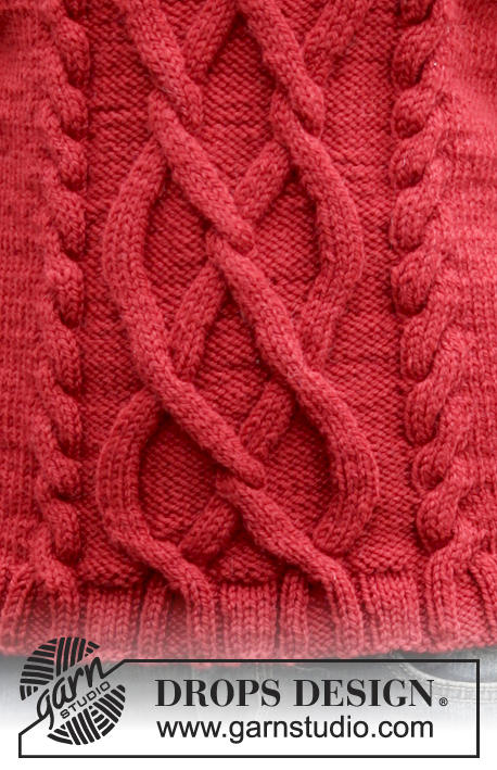 Strikket DROPS bluse i ”Alaska” med snoninger og høj hals.