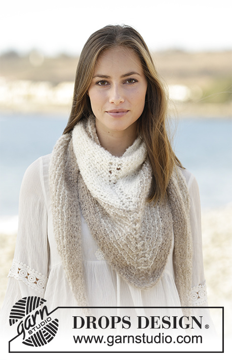 Sjal i retstrik og striber, strikket i DROPS Alpaca Bouclé.