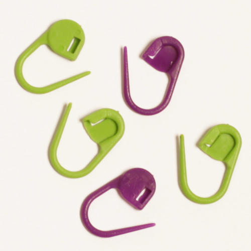 Låsbare maskemarkører (30 stk) i plastik. Leveres i grøn og lilla, og har gode afrundinger som ikke stikker, men er nemme at arbejde med.