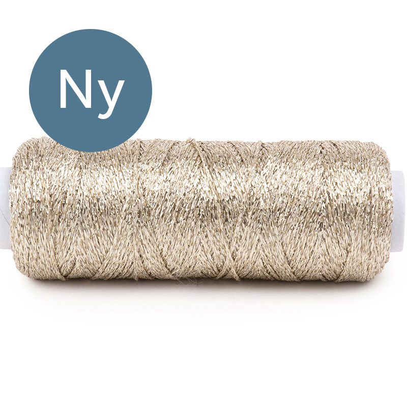 Glitter findes i guld- og sølvfarve og er et effektgarn i 60% viskose, som er en regenerert fiber lavet af cellulose (træfiber), og 40% metallisk, syntetisk polyester.