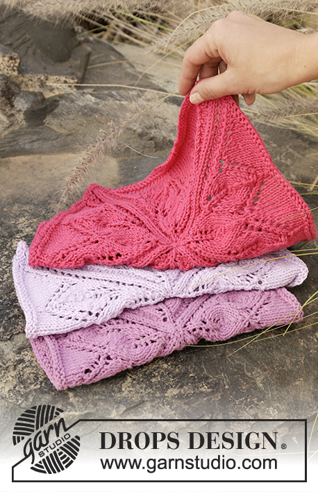 Strikkede DROPS klude i ”Cotton Light” med hulmønster, strikket som firkant.