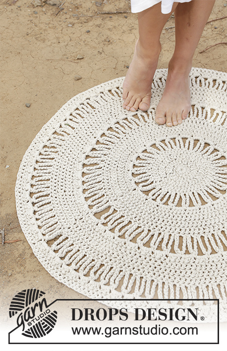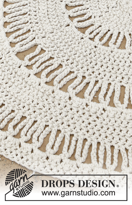Rundt gulvtæppe med stangmasker og hulmønster, hæklet i 3 tråde DROPS Paris
