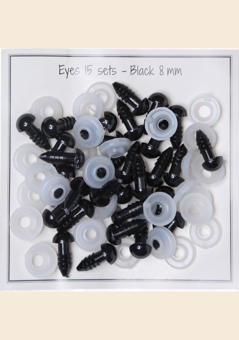 Pakke med 15 par sikkerhedsøjne str. 8 mm.