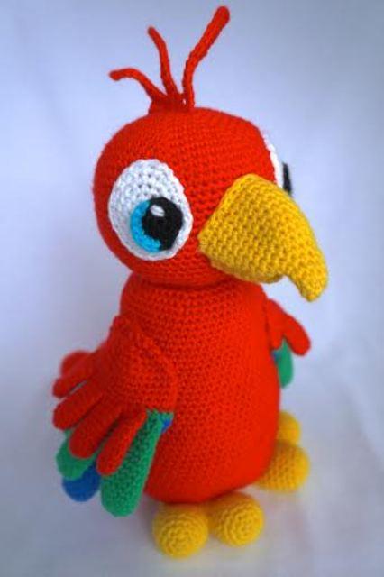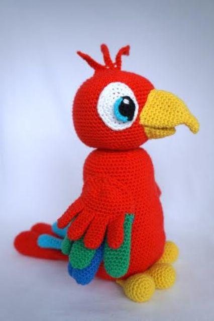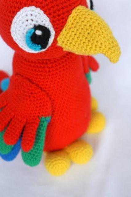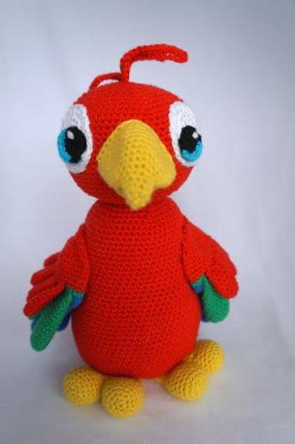Let læselig og detaljeret hækleopskrift på Hr. Papegøje. En sød, flot og farverig papegøje.
