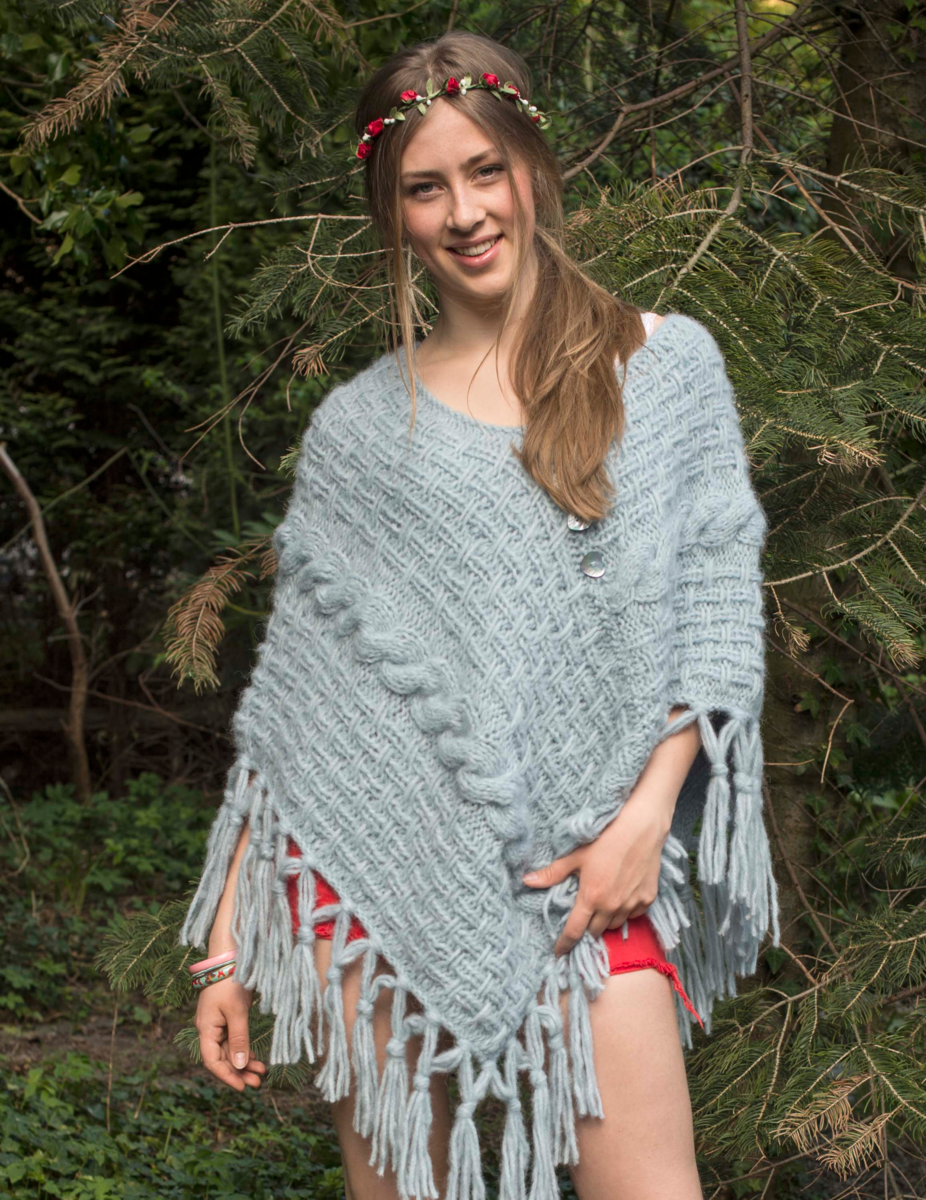 Ponchoen er strikket i Pus fra Du Store Alpakka.