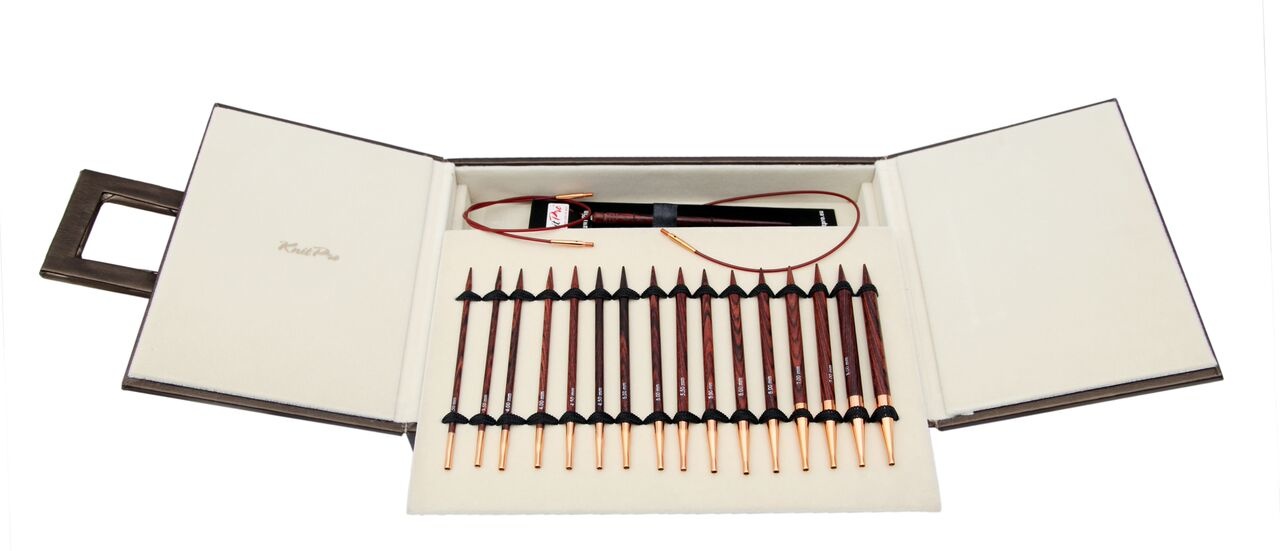 - Den ideelle gave til strikkeren: Sæt med 8 udskiftelige Symfonie Rose rundpinde leveret i en flot håndlavet æske i kunstlæder.