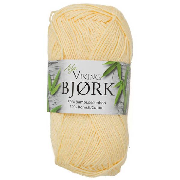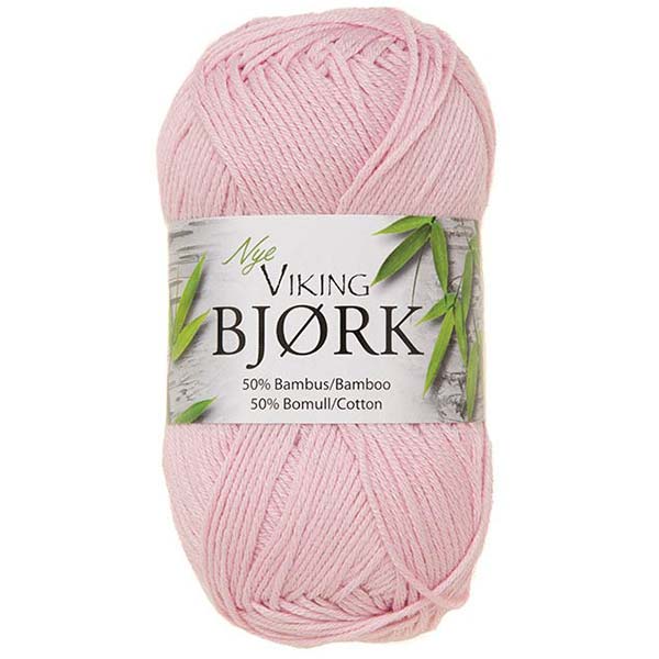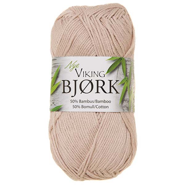 Viking Bjørk er et utrolig blødt garn bestående af 50 % bomuld og 50 % bambusfibre. Bomulden giver garnet blødhed, og bambusfibrene tilfører styrke og volume.